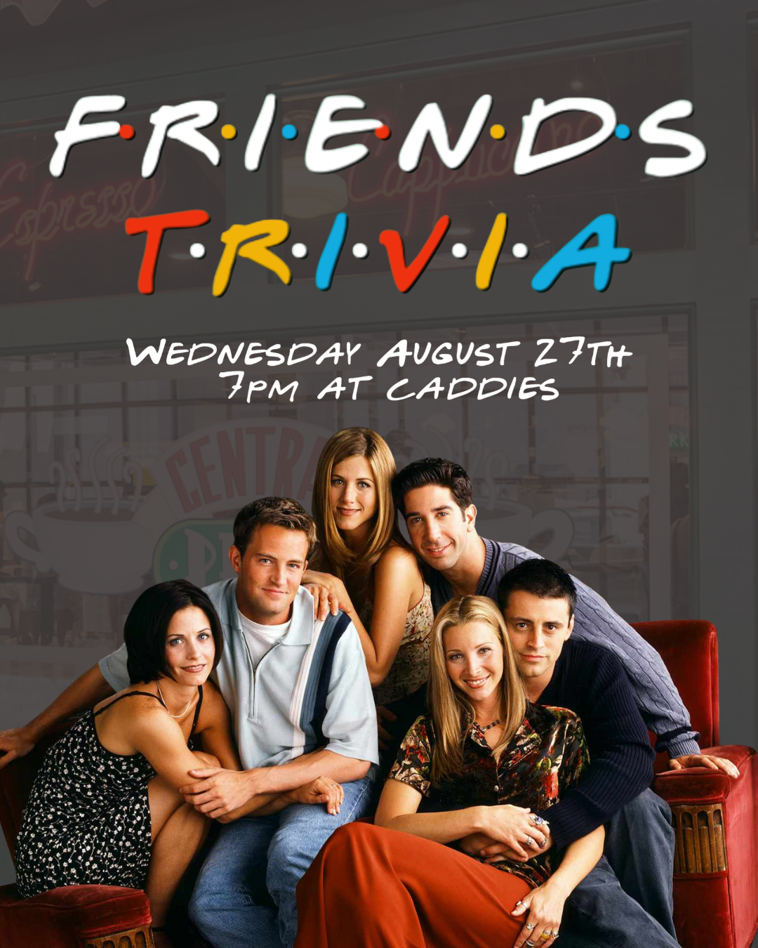 Think You Know Friends? Come Prove It! Gift Card prizes for 1st, 2nd and 3rd place HH Drink specials until 10pm/ HH Food Specials until 8pm Call for a Reservation: 301-215-7730 |